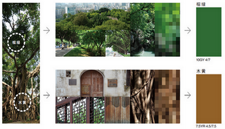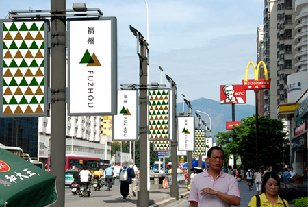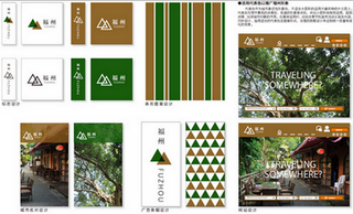 为了更加突出福州市城市的个性特征,特为福州市进行城市代表色的提取,代表色是城市象征性形象色,是可呈现和加强城市形象印象的、具有典型地域特征和可表达“故事”的色彩;典型的“绿荫满城、暑不张盖”的“榕城”生态景观和以“三坊七巷”为代表的古建筑中木材不上漆、不遮盖的独特历史建筑文化是福州独特的城市色脉——榕绿(10GY4/7)、木黄(7.5YR4.5/7.5),这两种色彩就如同福州专属的名片,在进行福州代表色的提炼中作为首选色彩提出,并结合未来的实际应用的普遍协调性和变化的可能性而提炼出来的。可专由政府机构使用,也作为城市公共交通、重要宣传品、制服等的色彩来使用,应用于公共设施、家具等方面。