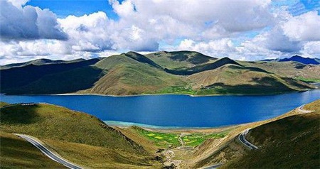 羊卓雍措被誉为世界上最美丽的水。羊卓雍措,“羊”:上面;“卓”:牧场;“雍”:碧玉;“错”:湖。连起来就是“上面牧场的碧玉之湖”。羊湖在藏人心目当中被看做是“神女散落的绿松石耳坠”,因为无论你在哪个角度,都不能看到羊卓的全貌,她有三个姐妹,空母错,沉错,巴久错,以即古羊卓雍错四姐妹在巨大的湖盆中,手足相连,难以割舍,共同组成了让我们肉眼看不到边的圣湖。她的身躯蜿蜒在群山中达一百三十多公里,只有在地图或是高空你才能惊喜的发现她犹如耳坠,镶嵌在山的耳轮之上。不同时刻阳光的照射,她会显现出层次极其丰富的蓝色,好似梦幻一般。