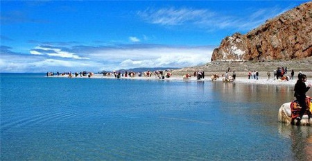 纳木措,蒙古语称“腾格里诺尔”,藏语纳木错,意为天湖、灵湖或神湖,是藏传佛教的著名圣地,信徒们尊其为四大威猛湖之一。每个到过纳木错的人,整个灵魂都仿佛被纯净的湖水所洗涤。站在纳木错湖边,这世界上最高最美的神湖让人震撼,仿佛置身于一个蓝色的世界。淡蓝、浅蓝、灰蓝、宝蓝、深蓝以及深邃如墨一样的蓝黑,这由浅而深的蓝色,蓝得清澈,蓝得丰润,蓝得迷人,似乎包容了世界上一切的蓝色。