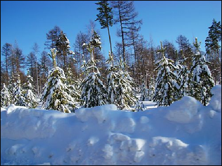 漠河另一特色就是雾凇。漠河出现雾凇主要在冬初和春初为多,偶尔在冬季出现。出现雾凇天气一般都在寒冷季节中天气突然变暖。雾凇多在夜间形成,形成雾凇的第二天一般为温暖和晴朗天气,日出之后,几乎一切都沾满雾挂,景象十分可观。
