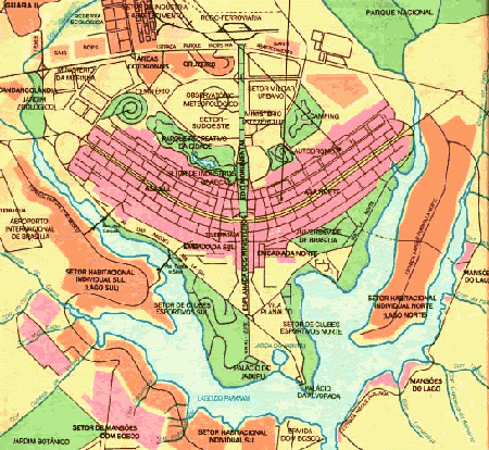 这是一个规划有序的城市。卢西奥·科斯塔的设计方案在公开竞赛中,战胜了其他62个竞争方案脱颖而出。巴西利亚,严格地说应该是其城区,基本上是由若干特定功能区和数百个居住方区组成的。