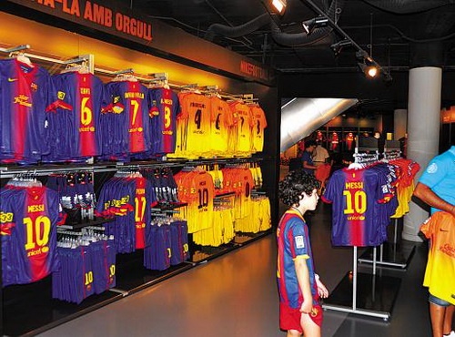 本来以为只有我一人前往“朝圣”,谁知竟然还能搭到一对小情侣同行。本来还担心如何跟的士司机说要去的地方,结果刚说出来巴萨的名字,司机就已经发动车子了。由于当天没有比赛,所以来的都是游客。入口处最显眼的莫过于纪念品的销售,除了主客场球衣、钥匙扣、帽子这些常规的纪念品外,竟然还有朱古力。这里只是纪念品销售的冰山一角,更多纪念品还在里面。再往前走的左手边有一排看起来像邮筒的物体,原来这是只能使用信用卡的自动售票机。印象中很多足球俱乐部的球场都不让进内参观,但是巴萨却几乎全部都可以参观,包括更衣室,门票是23欧元,难怪人家是世界上最赚钱的球会。