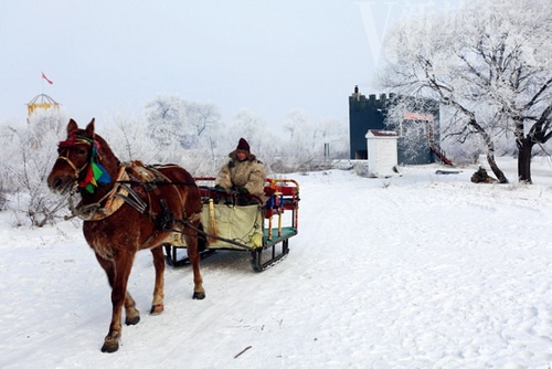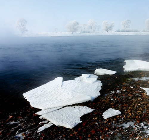 沿着1900多公里长的松花江河岸顺流而下,不免会产生种种奇异的感想。有时碰上蔚蓝的天色,满地积雪,映着黄昏时候的淡云,仿佛画卷一般;有时碰上冬雾,在朦胧中慢慢透出明亮严肃的寒光,仿佛电影《魔戒》里面的场景一般,着实叫人留恋??等到了枯枝摇身一变为雾凇,单调沉寂的冬立刻就喧闹起来,让你不知在人间还是天堂。
