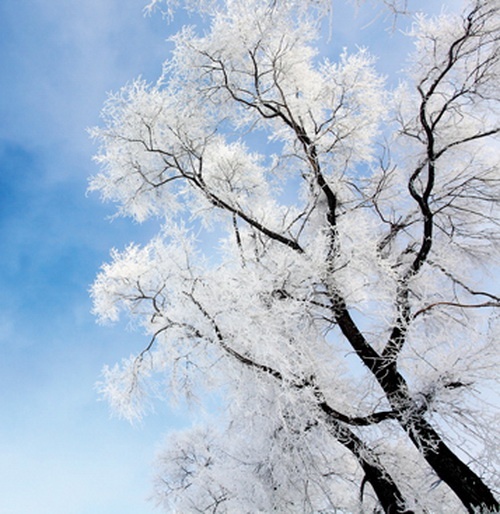 清晨里阳光渐行渐近,光芒穿透了弥漫的雾蔼,毅然地照耀在滔滔的江水上,江水在阳光的温暖下又开始升腾,当人们从温暖的睡梦中醒来,抬脚踏入寒冷的雪地上,再一抬眼,哦,这哪里是冬啊!这真是忽如一夜春风来,千树万树梨花开。冬雾神奇地摇身一变成了雾凇,萧瑟的冬一下子就喧闹起来,谁说冬里没有鲜花,那是因为姹紫嫣红的百花在冰凌花前逊色退却,无颜争艳,只有这雾凇的冰凌才是松花江畔的主宰!