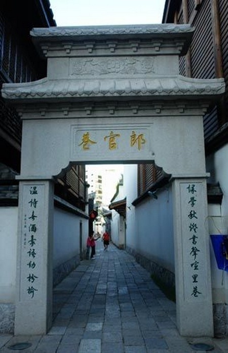 塔巷在郎官巷之南。据《榕城考古略》载:“旧名修文,宋知县陈肃改名兴文,后改文兴。今呼塔巷,以闽国时建育王塔院于此也。”此大塔位于巷北,并有塔院看管,被视为福州文运兴盛的象征。南宋淳熙九年(1182年)塔还在,以后未见记载。清代在巷内砌造半片的小塔,作为古迹纪念。50年代,小塔移置巷口坊门之上。